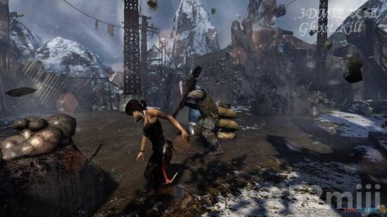 经过一座大桥来到敌人地盘,所有人都喊着不能让劳拉到通讯塔。对付近距离的敌人可以按Y冲撞下,然后开枪打下半身,敌人半蹲的话可以直接过去按Y终结掉,有点类似BIO5和6。还有就是利用环境因素,油桶之类的。