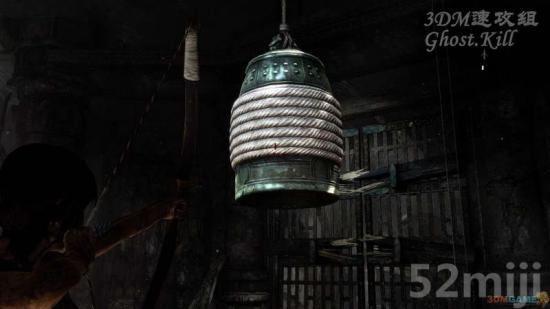 接下来又是个类似的房间。出口在正下方,要做的就是破坏掉支撑着大钟的两根柱子。杀光敌人后来到二楼,二楼有两扇窗户,先打右边的,吹进来的风会把铁球吹向左边的柱子,用弓箭把铁球拉过来后铁球摆回去会砸断左边的柱子,然后关上右边的窗户开左边的,方法和之前一样,破坏掉右边的柱子后两扇窗户都打开,用铁球砸一下大钟既可。大钟落地后整个房间都会崩塌,QTE逃离这里。