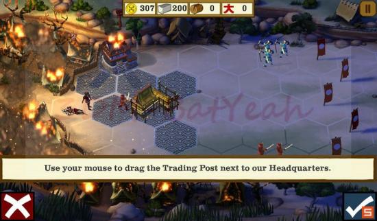 譬如城堡初期周围只能放置贸易站,而铁匠铺必须和贸易站相连,而教堂必须和伐木场相连。任何建筑必须要放置在可放置的建筑占地格相邻的区域,而且不能违反放置条件否则肯定会导致无法放置