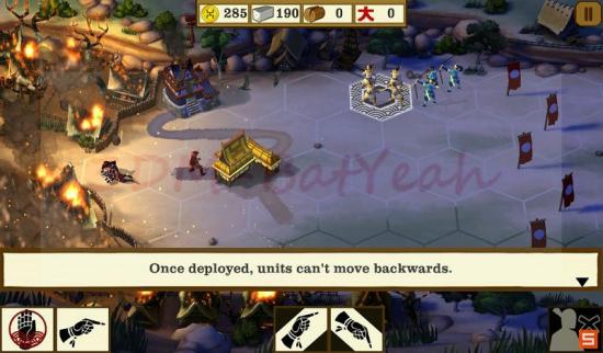 游戏的战斗模式类同许多的战旗模式,将部队生产完毕处于序列之中,然后点击放置到游戏设定好的我方战区。这里注意一点的是,部队是无法向我方反方向前进的