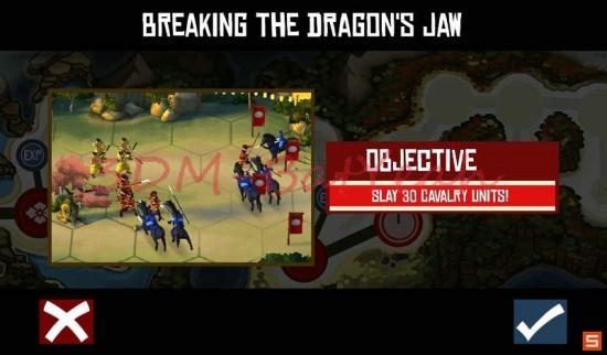 本关的技巧在于合理配置部队。首先等待敌军的前锋骑兵冲来之后,将武士和长刀兵调到前面杀死。之后则是慢慢等待之后的几支武士部队重来,集中消灭。然后等到所有的敌军较强的单位被杀死之后,开启无敌的技能于骑兵和较前位置的武士快速冲到前面杀死火枪兵(或者直接冲过去)即可完成本关卡