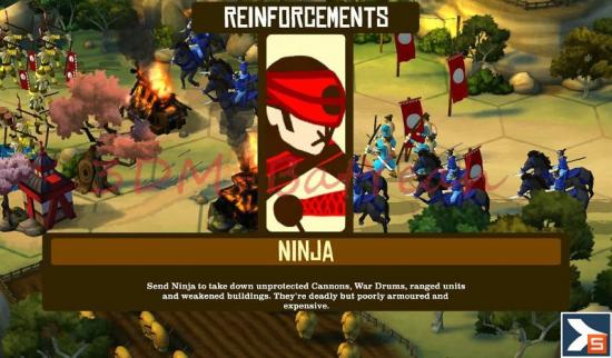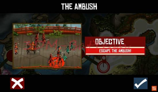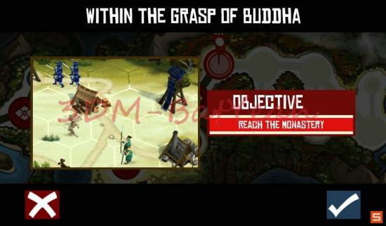 这一关则是让你练习忍者的使用。忍者只可被相邻格区域的僧兵类部队和敌忍者侦查到,而且一旦被发现之后将无法恢复到隐身状态