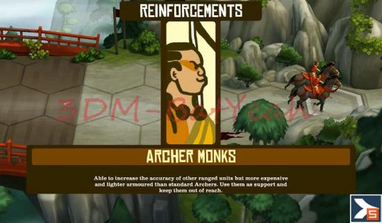 完成本关卡将解锁游戏中的最强弓箭兵--僧弓箭手(射程比普通弓箭手远,杀伤也较高)