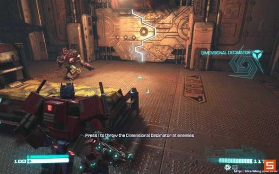 注意下图所示的能量柱。通过这些能量柱可以让擎天柱跳跃到高台的区域,后面会出现很多类这样的物体,而且很多是前行的必经途径,玩家一定要留心。