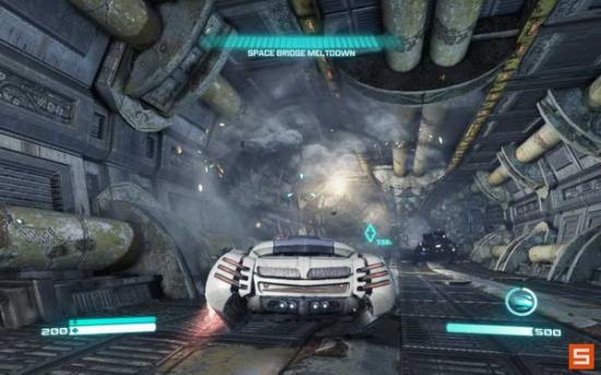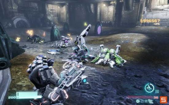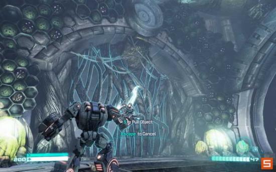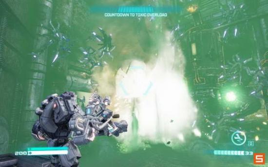 之后进入到最里层过载整个制造系统,然后快速逃出地下洞窟。这里玩家要注意,后面游戏的很多场景再结束之后都会出现这样的逃离剧情。玩家需要在上边栏的血槽降为0之前逃离整个大场景才能算成功。遇到这样的场景,建议按F切换到机器模式并且持续按住鼠标右键加速前进