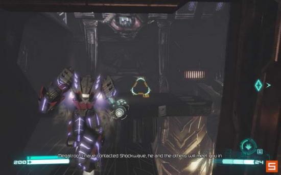 最后按Q将小机器人派遣到左边的废坑之中,跳到最上面的平台将威震天的头颅扔下