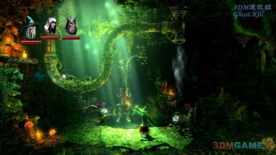 到这个房间之前会遇到蛇,顺着移动的台阶跳到左边的蛇脑袋那里,砍他几下他就会跑了,然后来到图中房间。跳到中间的木板上。