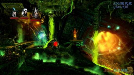 跳到木板上攻击上方的蛇头,等他移动后上方的蛇尾会向下流酸液,躲开酸液跳到左边的这个位置攻击蛇头,几次之后他会逃走,然后去右边离开这里,进入魔境后过关。