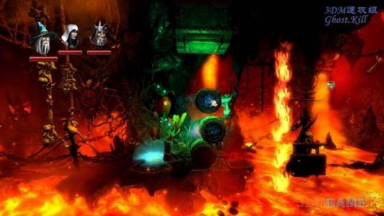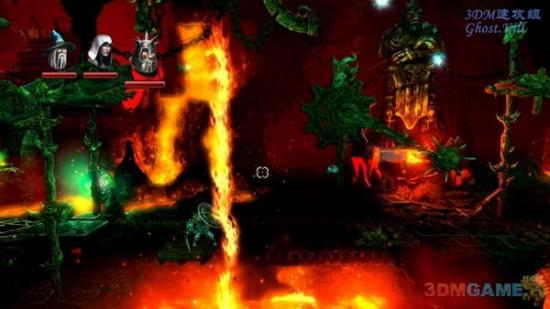 上层的妖精杀光后跳到移动台阶上,中途要防守流下来的岩浆,还要躲开摇摆的刺锤,难度挺大的。