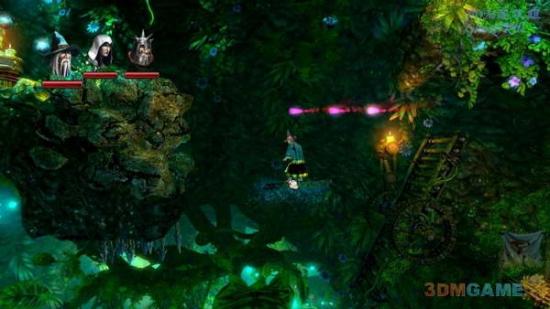 踩着巨大的蘑菇跳到上层的叶子上,这里直接用特殊点的方法通过,变出来两个物品,不一定要变,只要可以移动的物品都可以,把两个摞起来,站在上边,移动最下边的物品的话可以浮空,要很慢才行,快了得话会失效,直接浮到右侧最高处的平台。这个方法基本无敌,一般情况下不太想用。