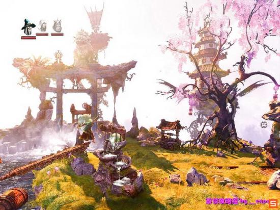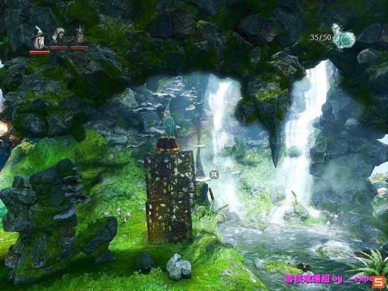 这里前面有一个会放电的低空平台,这里的道具可以用盗贼轻松全收,但是地下的那个需从前面的河里游进去。但是平台一直在放电,水会导电怎么办(这里不讨论物理问题)。只有想办法把那东西给困住了。注意前面平台底下有刺。