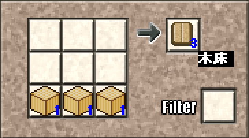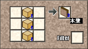 因为这是2D游戏,所以建房子只需考虑“墙”和“门”即可。常用的建筑材料包括土、木、沙、石、砖和羊毛,这里以最容易获得的“木”举例: