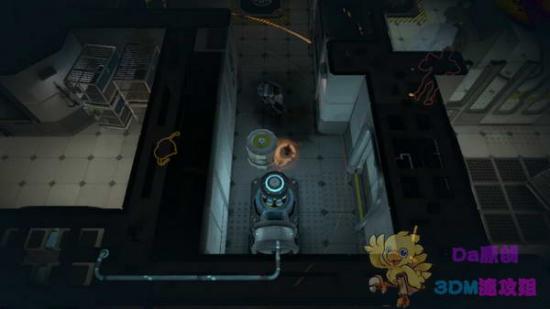 这里操作比较繁杂。先要引敌人攻击那两台激光炮,再用分身引他面对右边的墙