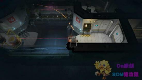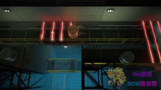 因为只有下边运输带才有不怕镭射线的桶子,所以要先藏在下边的桶里