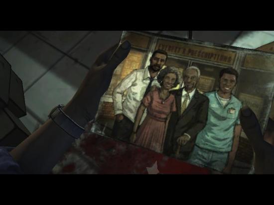 地上发现照片,里面惊现主角,原来主角的父母就是这家店的主人,右边那位就是在外面变成僵尸的店员,主角为了演示罪犯的身份,不说出真相。