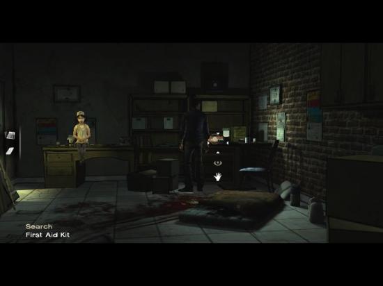 从医药箱里拿到绷带,给小萝莉包扎,对了别忘了从书桌抽屉里拿个遥控器。
