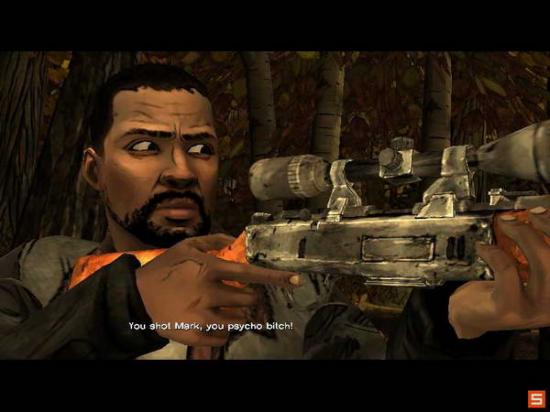 双方僵持着,那女士不断地在说和你一起的基友一些坏话,好像包含着什么秘密。这里玩家也可以选第一个直接射杀那女的,或者后面的选项来缓和气氛。