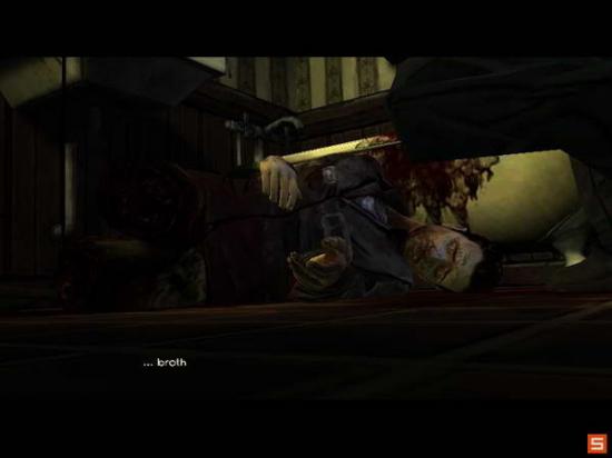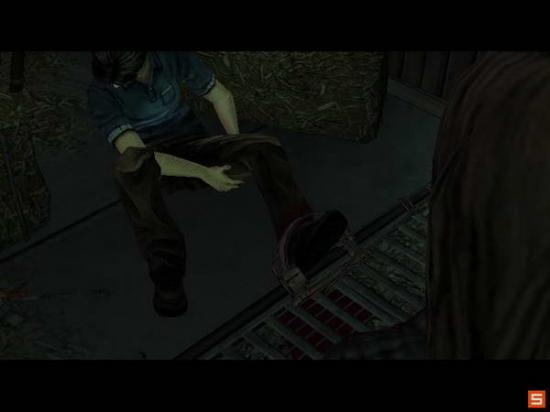我擦!四眼兄被锯断了双腿在地上奄奄一息!他还提醒玩家说别吃那顿晚饭。。。。因为那是我身上的人肉。。。。。