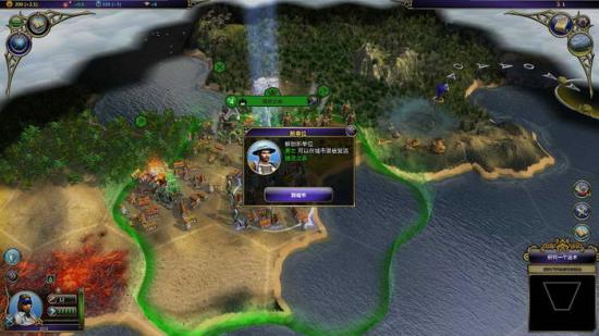 譬如下图所夺取的三级城市,两边临海,地势狭窄而且可作为产出建筑物的资源不是很丰富。所以该城市可以作为前线暴兵城市方针进行建设