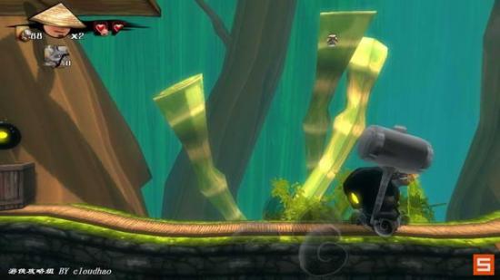 这一关相当简单,一路上的小怪不会咬人,连动都不会动,我们要做的是收集所有的酒坛子,有一些是藏在箱子里面的,需要打破才能拿到。