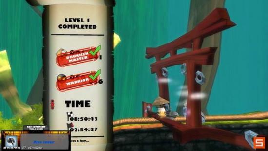 第一关通关了,打了两次才把所有酒坛子都收集了,杀怪数量也足了,貌似激活了什么成就,可以去主菜单查。
