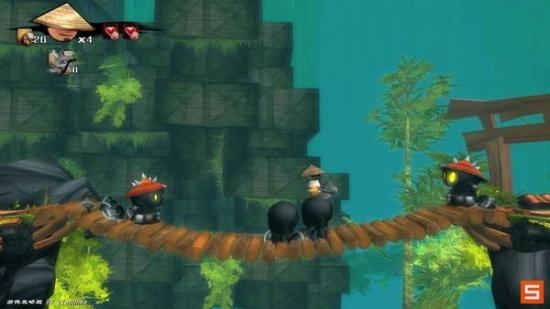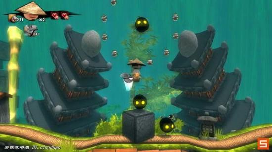 经过一个蓝色存档点后,有成群的戴帽子怪从两边包围,大师自然不是正面冲突,利用震地打掉它们的帽子,跳到它们头上是很安全的,反复震地就可以干掉了。
