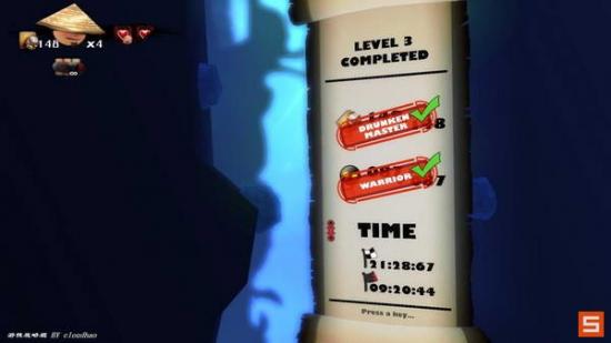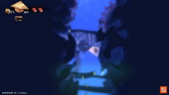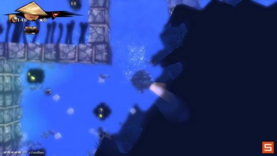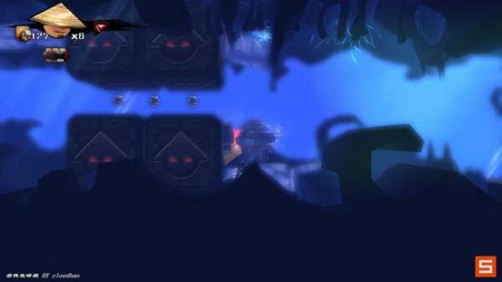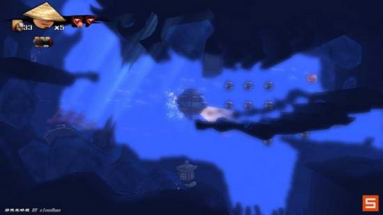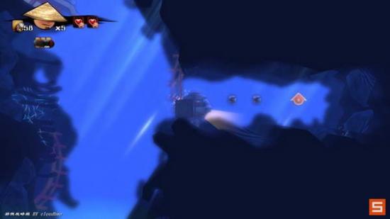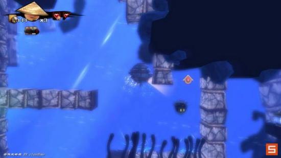 第三关在水里冒险,普通攻击变成了发射鱼雷,但是刚开始那两条会伸缩的触手居然是打不死的。在水里潜艇是会一直下沉的,想要浮起来要不断地按跳跃键。