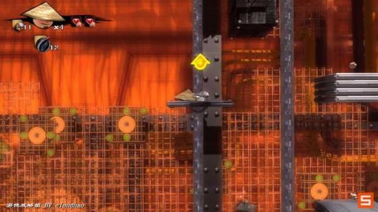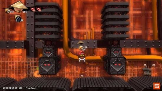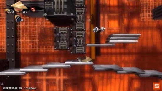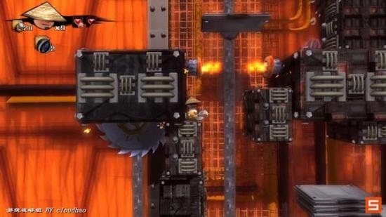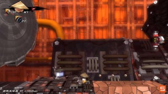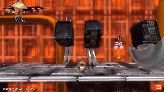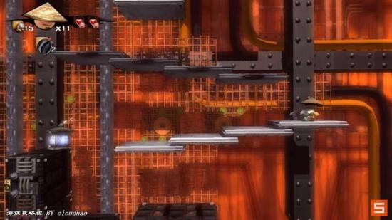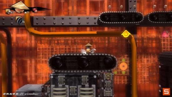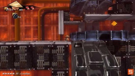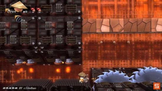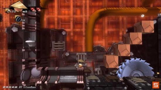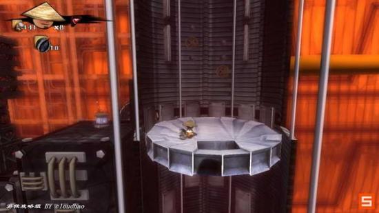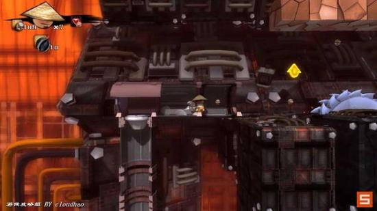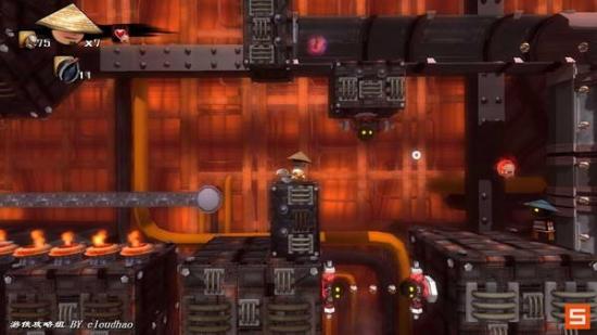 在管道里坐升降机上来,有存档点也有命牌,别高兴得太早,前面是一击毙命的旋转齿轮,只能从上面晃过去,为了吃全酒坛子,在这里挂了好多次啊。