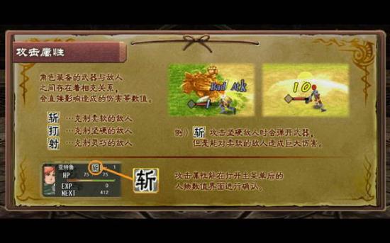 本作新意在于对于不同怪物的攻击模式设定。本作一共有三大类人物和怪物的设定。每个类别的人物分别克相应类的怪物,如斩 亚特鲁则是克弱甲敌人,而 打 多奇则是可强甲类敌人