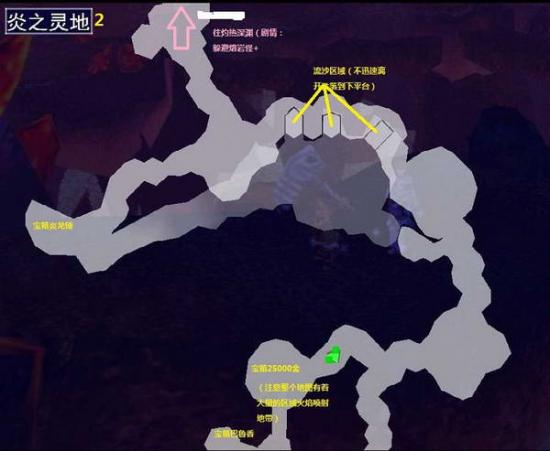整个炎之灵地的地图不是很复杂。注意本场景大部分状态下需要装备 冰寒结晶 来在岩浆上行走