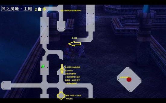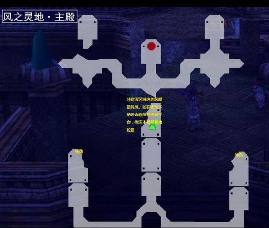 风之灵地和风之灵地主殿的迷宫比较复杂。全程玩家需要装备绿风斗篷通过风区在各个平台之间跳跃