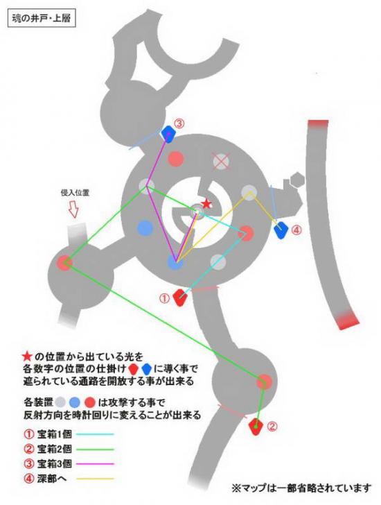 魂之井上层的激光机关可以参加下图。其实很简单,自己慢慢摸索就能打开