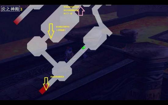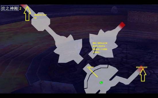 剩下的路途看如下图注即可,很简单。炎之神殿最深处则是开始第二个BOSS战斗