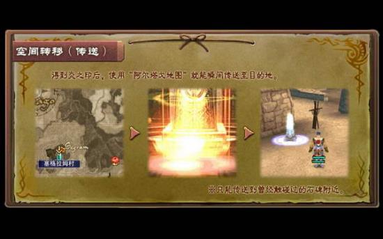 鼠标点击已激活的石碑即可进行传送。蓝色表示野外传送点,绿色表示城市传送点。红色旗帜则代表亚特鲁一行人的目前为止