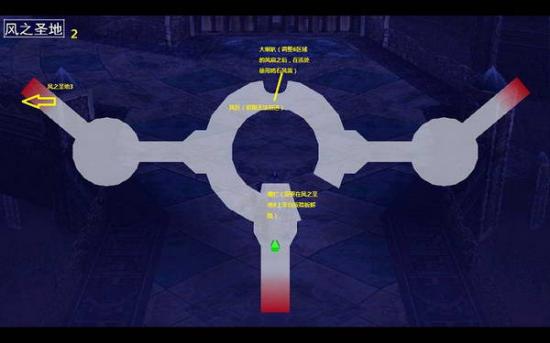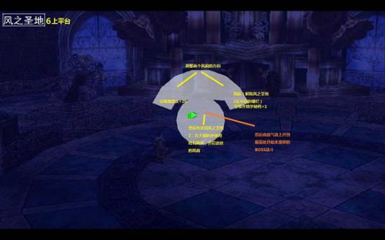 整个风之圣地算是比较复杂的一个迷宫。大体的玩家流程就是先取得绿风斗篷---拿取鸣石风管---来到风之圣地6区调整风扇方向---在大喇叭处使用鸣石风管,开启下层的风扇---前进到最上层开始BOSS战斗