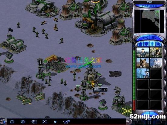 基地里面出几只狗防守敌军空降,间谍进入孙军科技实验室后速度建造心灵突击队,开始因为间谍进入苏军科技实验室的第一次触发很容易防守的。狂出心灵突击队,多造兵营。钱不够就把心灵突击队往复制中心里面丢,这样钱就用不完了,这里的几个油井占领后在周围造防空炮,心灵突击队也到此处来防守,但是上面最好还是留些心灵突击队