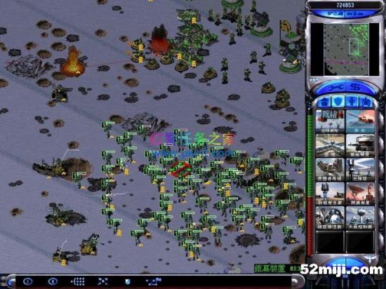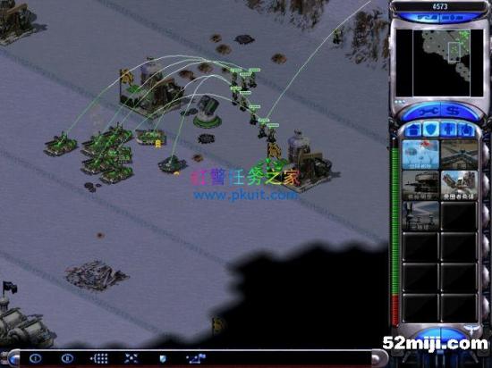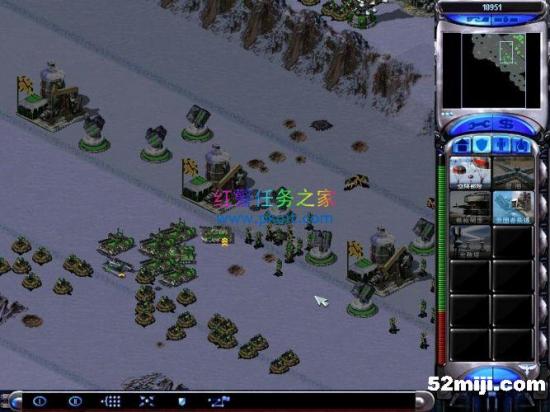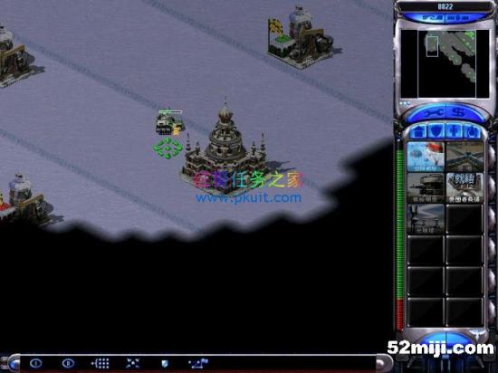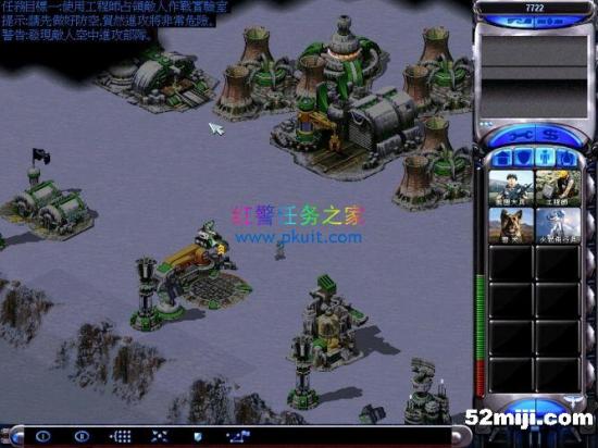 派兵下去一个一个的慢慢的触发。触发一次防守好后再次巩固再次往下面走触发防守,到达下面的时候我军会支援超级武器铁幕给你