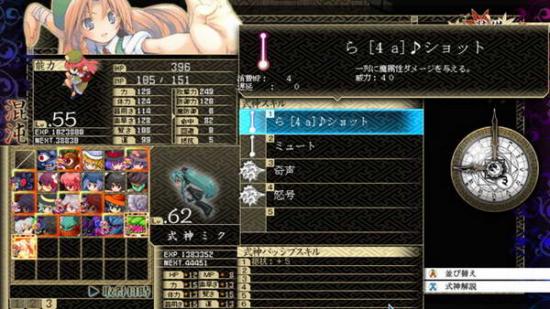B和残机:遗憾的是前作的BOMB系统不见了,残机限制也取消了。战斗死亡后仍然能得到经验,战斗结束自动复活,如果战胜敌人后我方全灭,仍然算我方胜利。SC:这次暂时我只知道LSC的存在,发动条件和前作一样,攻击或者被攻击时随机出现,几回合后消失,每个人物开始一种,后期就不清楚。