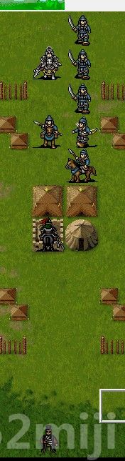 第二会合,姜维退到城内四个左边兵营上方一格,对上边的骑兵放旋风。尹赏往下走(最大步)。