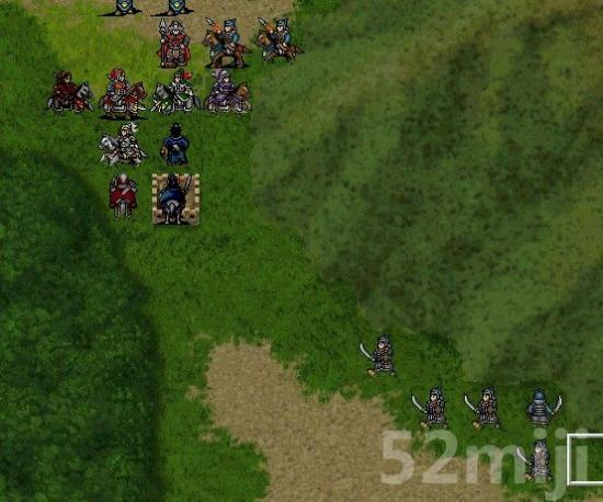 第一回合,全军向左上移动,尽快消灭夏侯霸的前锋队,孟琰开始向大地图最右上角的山上慢慢移动。