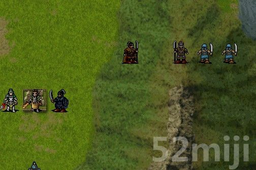 第一回合,姜维冲到最前面霸气,赵统给姜维加速,杨兰走到如图位置,不然会触发夏侯霸单挑,就无法完成姜维对话夏侯霸了。廖化走到最下面吃个统帅果(到S了),李歆给敌兵放个降敏捷,并准备下回合回合傅彤。
