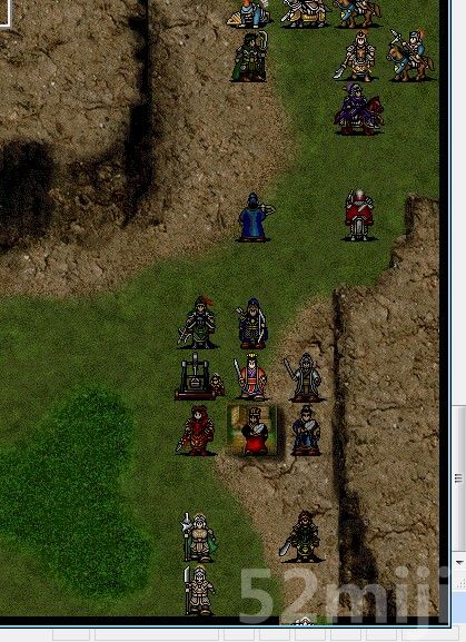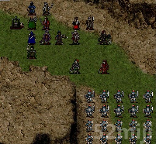 第十回合,杨兰上前如图位置触发邓艾出现,刚好触发赵熊单挑。张嶷出现造成对方全晕,抓紧时间灭吧。后面的追兵,加好防御迎击。可以SL几次,让敌军恢复混乱状态的人少恢复几个。要先用策略群伤、定军、炮车、花蔓杀了下面的大戟士和弓箭手,这样就很好打了。张嶷给武威营放毒烟。第十回合站位图