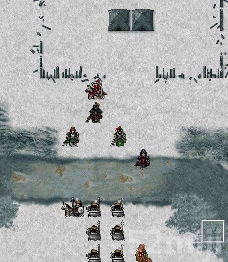 开战前记得多买些豆袋(15个左右吧)。把敌人堵在河里面,为了练果子,友军适当攻击,主要用他们来给自己加豆袋(姜维也可以放治疗)。上一关可能没有练满级别的鱼鳞甲给敏低的句扶,姜维敏高防低吸引攻击。本关在第三会合站好位(站位如图)句扶站在河里这样右边的敌军从右侧上不去,敌军数量少到5个左右的时候本方可以退回营地减少豆袋的用量,马岱最后要抽时间到敌方营地拿东西。