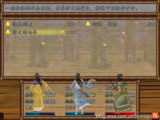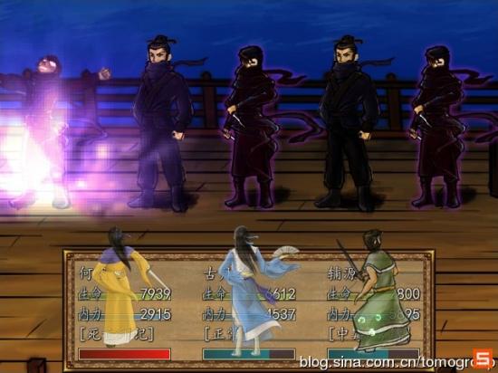 BOSS战一:敌人为两个黑衣人·紫,两个黑衣人。何然群毒加二人普通攻击可很快打过。注意黑衣人弱火,黑衣人·紫抗火。何然的冷火剑为水火属性,所以何然打黑衣人,古月打黑衣人·紫。不到万不得已不要加血。