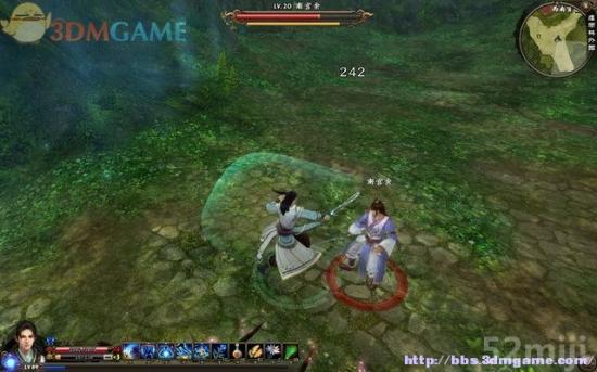 兄弟两人争吵中剑拔驽张,展开一场激烈的决斗。南宫余的攻击招式比较单一,在他身前发射一道弧形剑气,或是跳空劈出三道散射的剑气,当身体爆发光华的时候快速移动身位。