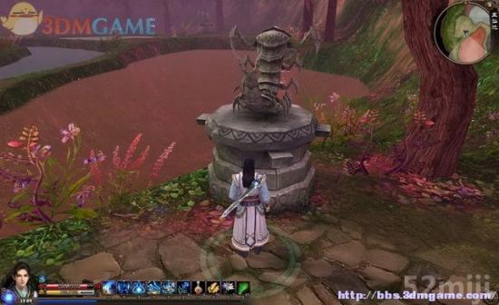 将五尊石像全部旋转并吐出毒液,那么通往中央的石桥会接通,进过去会自动存档。