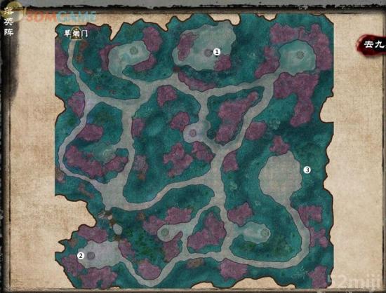 小离进到阵中,迷宫中共有八个阵眼,每个阵眼有一块踏板,要按照乾、坤、震、巽、坎、离、艮、兑的顺序踩踏板,才能打开密洞的石门。踏板上的字是随机出现的,因此每找到一个阵眼可以存档,再读档刷新,刷到需要的字再过去踩。