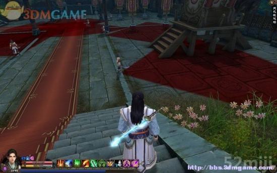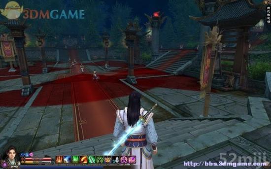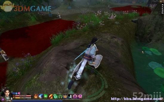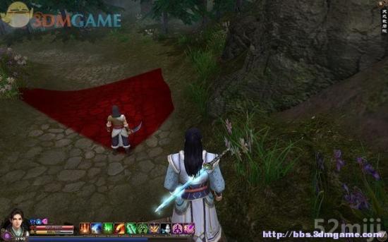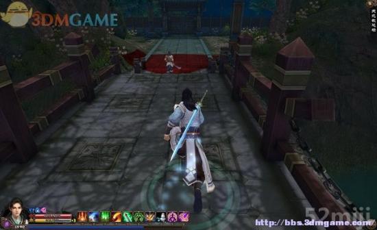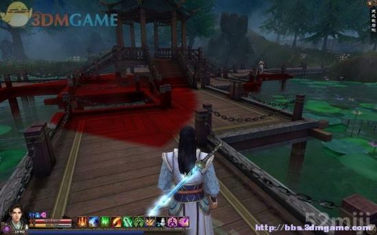 第五步:观察东边桥梁上的两名守卫,等两名守卫一起往桥头这边走,第一名守卫站到桥头不动,而另一名守卫转身,这时迅速由第一名守卫的身后上桥,跟随另一名守卫走到对岸桥头,等他站住不动再越过视野冲进地宫。