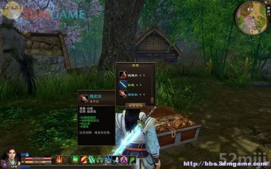 在离开竹楼前,记得拾取柴嵩掉落的战利品,有小酒儿的40级蓝装武器,还有剑意、还魂丹等。