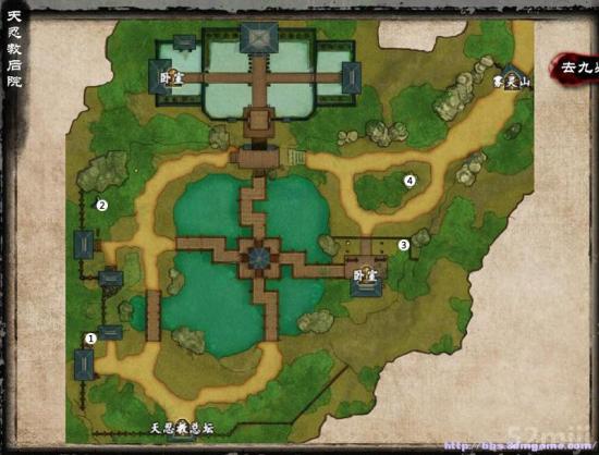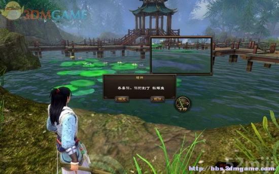 来到天忍教后院,在水塘可以玩玩钓鱼小游戏,在浮标沉入水底后立刻提竿。钓出来的东西五花八门,除去烂木头、水草、锈铁块、破瓷片等杂物,还能钓掉一些鱼类(黑鱼、马哈鱼)和装备。这里能钓掉镶玉锁(项链),还有任务道具“虹鳟鱼”。